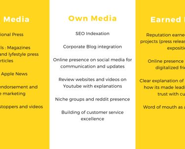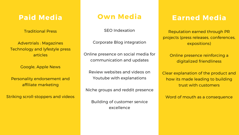 A travers trois types de médias : les médias payés, les médias propriétaires et la réputation.