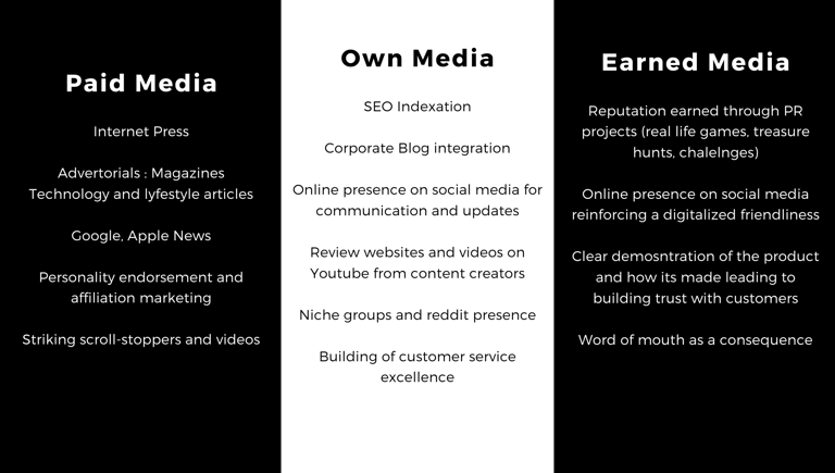 A travers trois types de médias : les médias payés, les médias propriétaires et la réputation.